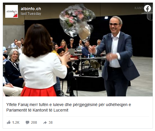Zgjedhja e Ylfete Fanaj si kryetare e këshillit kantonal festohet në albinfo.ch, një platformë lajmesh nga Zvicra shqipfolëse.