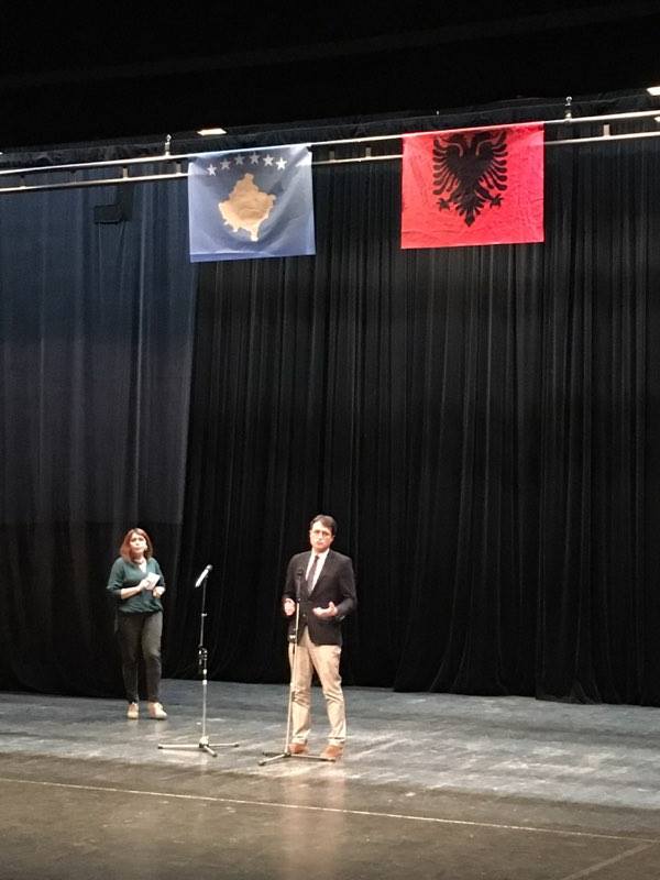 Në manifestim ishte i pranishëm edhe ambasadori i Kosovës, Ramadan Avdiu i cili gjithashtu iu drejtua të pranishmëve. Edhe ai apeloi tek prindërit shqiptarë që të mos u flasin fëmijëve në gjuhën gjermane apo frenge, duke i përgëzuar mësimdhënsit për punë e tyre të cilën janë duke e kryer menjë ndjenjë të posaçme respekti ndaj atdheut.